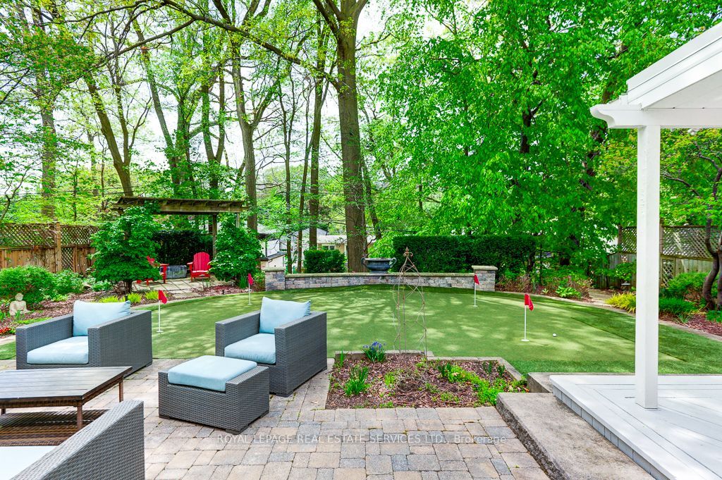 This turn key home on a 60 X 135 private ravine-type lot features three large bedrooms, four updated bathrooms, large principle rooms and a main floor den, perfect for a home office. The Backyard is your own private oasis perched above your rear neighbours with ample tree coverage and features meticulous, low maintenance landscaping and your very own four-hole putting green! Separate flood lighting for the putting green. Walkout from Dining room to Patio with a covered eating area. Garden gazebo has great views. Convenient location just steps from Humber Valley Village Junior Middle School, Kingsway College (private), parks, playgrounds, outdoor skating rink, tennis courts, Convenient transit and a short walk to Humbertown Shopping Centre.